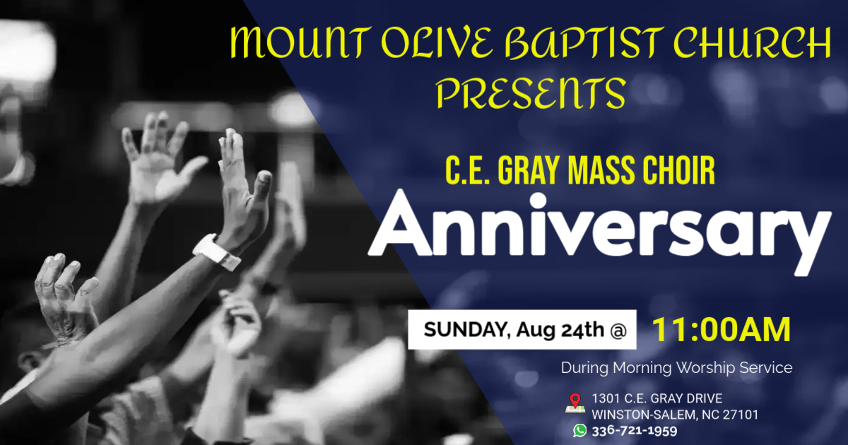 The C.E. Gray Mass Choir will celebrate their 3rd Anniversary during our 11AM Morning Worship Service. Members and guests are encouraged to attend and experience a high time in worship, praise, and a powerful Word of God!