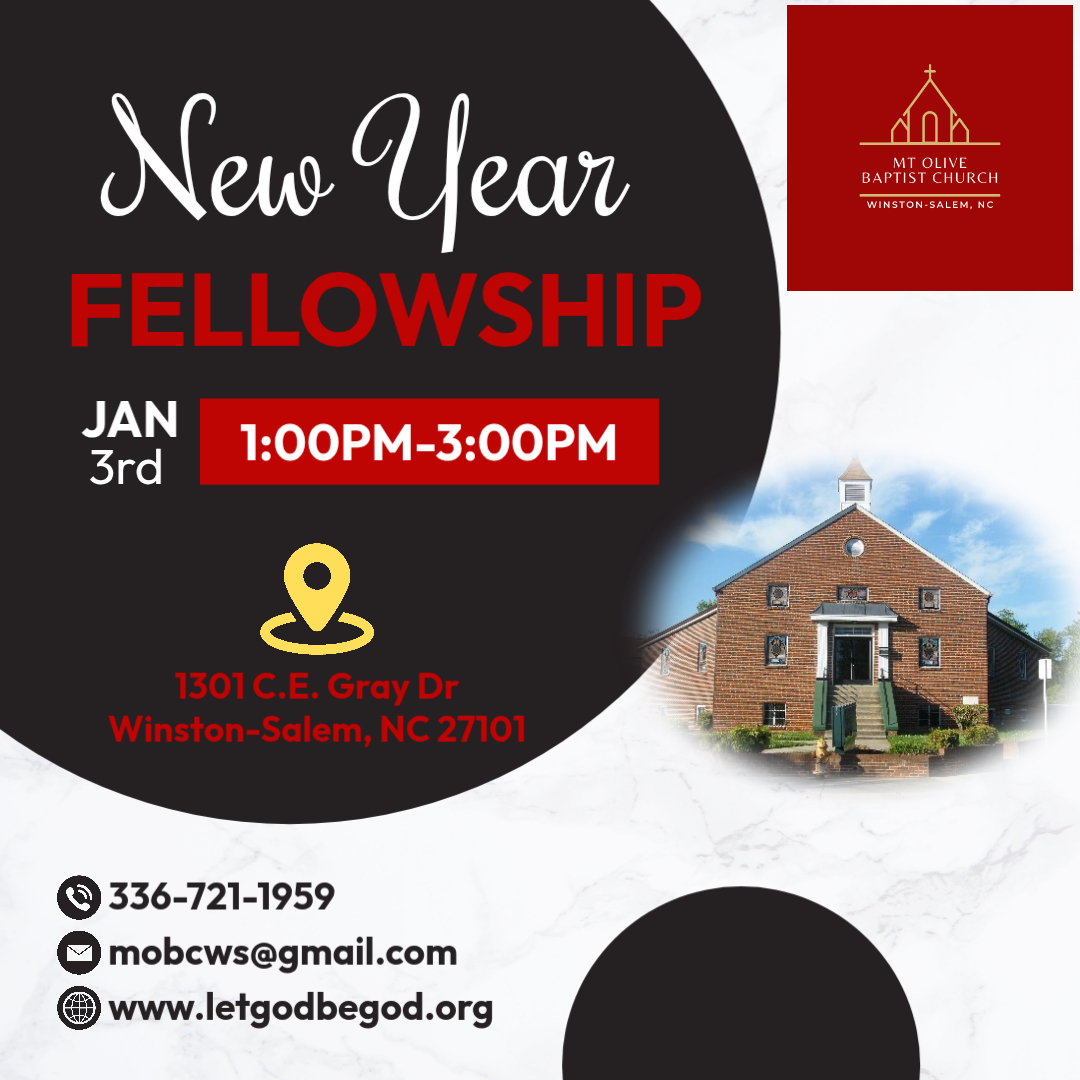 All members are invited to join us for our New Year Fellowship on Saturday, January 3, 2025 from 1-3PM. This will give you and opportunity to learn about both old and new members of our church.